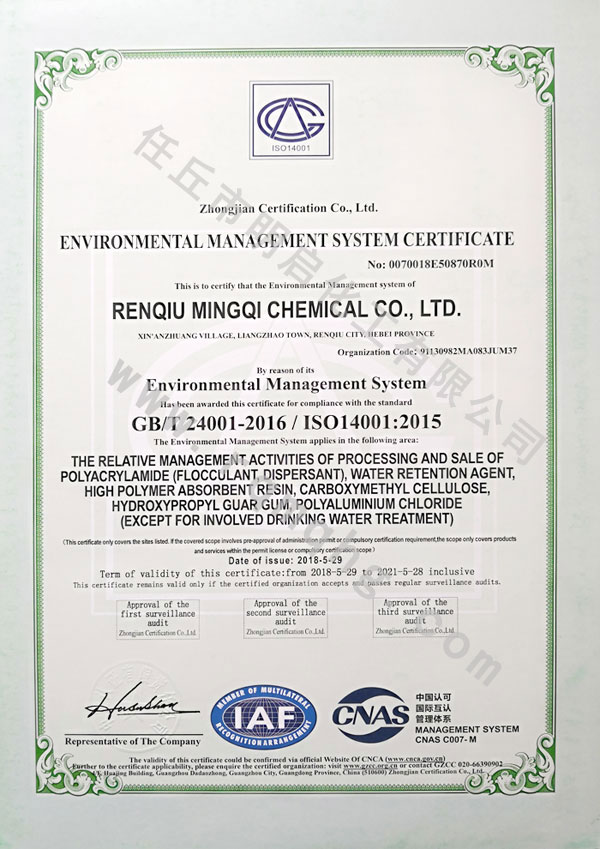 環(huán)境管理體系認(rèn)證證書(shū)